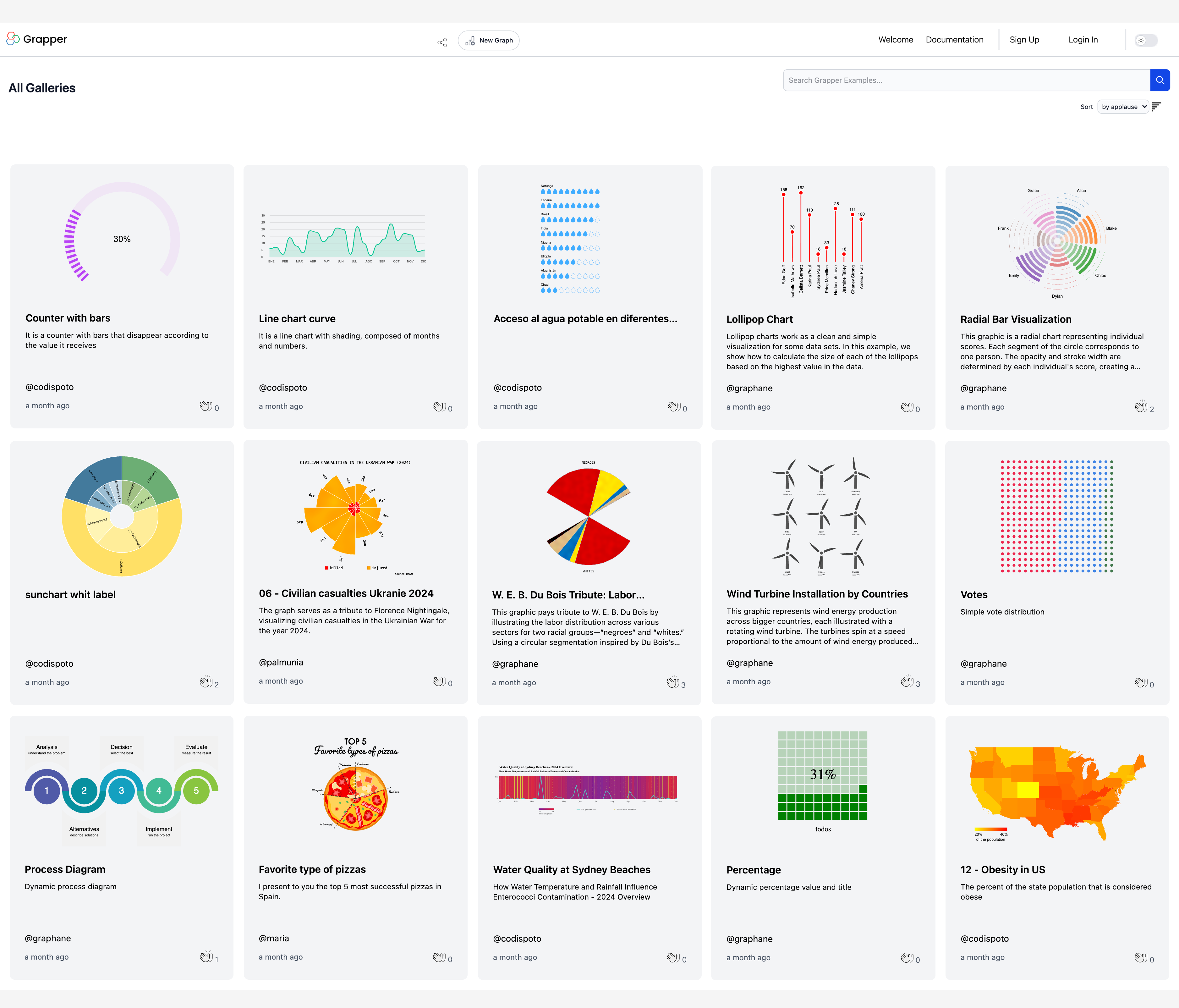 Powerful data vizualization libraryWe believe powerful data visualization should be simple and accessible. Grapper is a tiny microframework (only 12 kB gzipped) that lets you build and manage graphs effortlessly with clear templating directives.